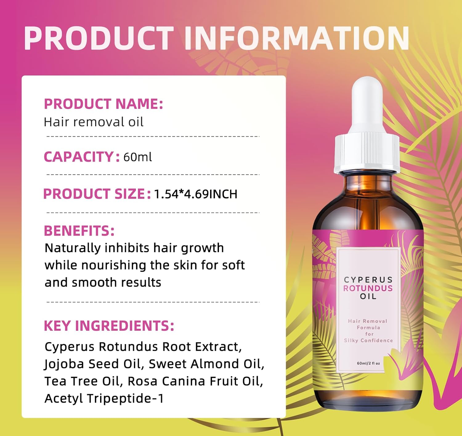 No more daily shaving or harsh stubble. Cyperus Rotundus Oil helps naturally minimize hair regrowth while leaving your skin hydrated and silky. With every use, your skin becomes smoother, softer, and irritation-free.